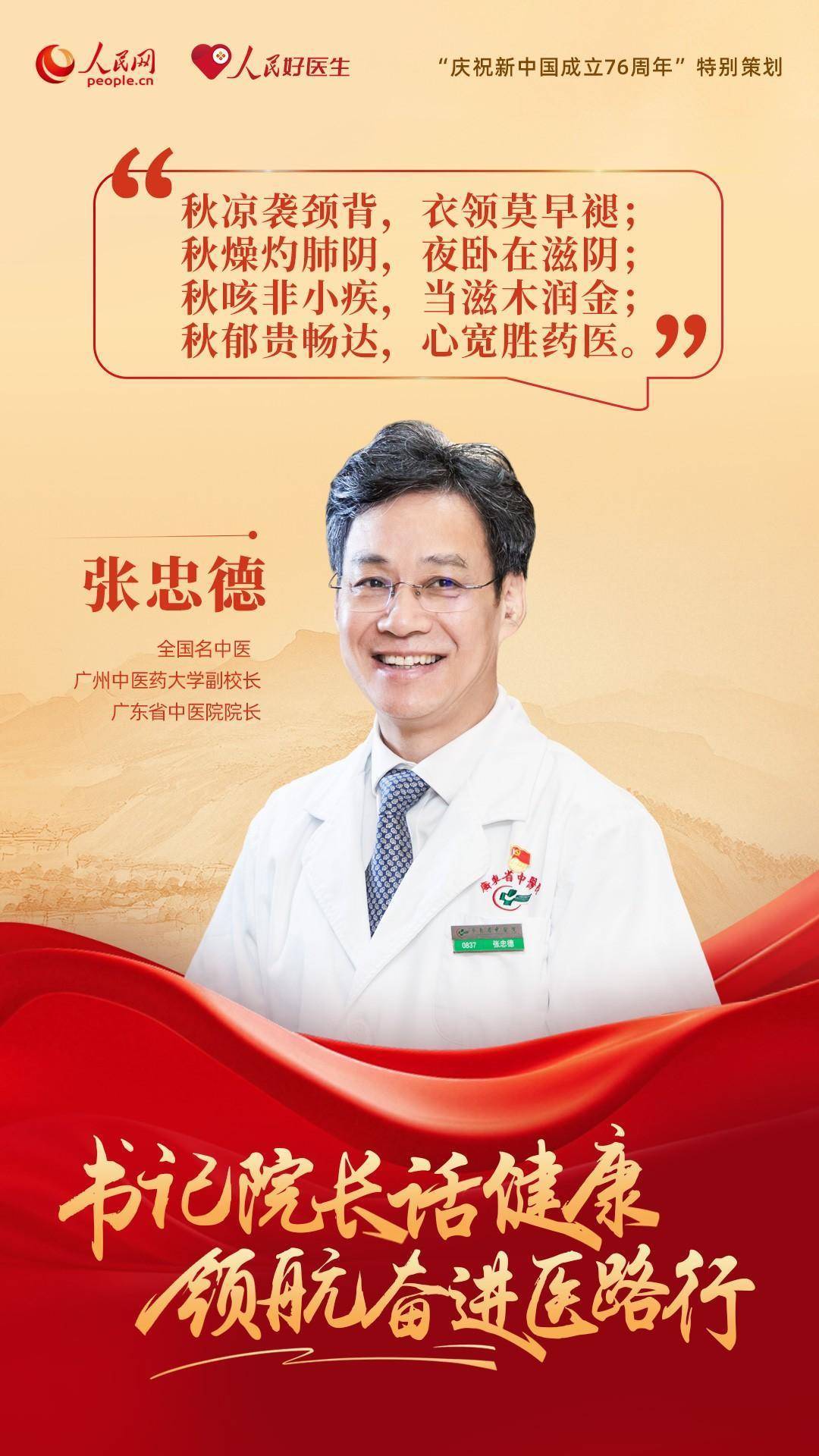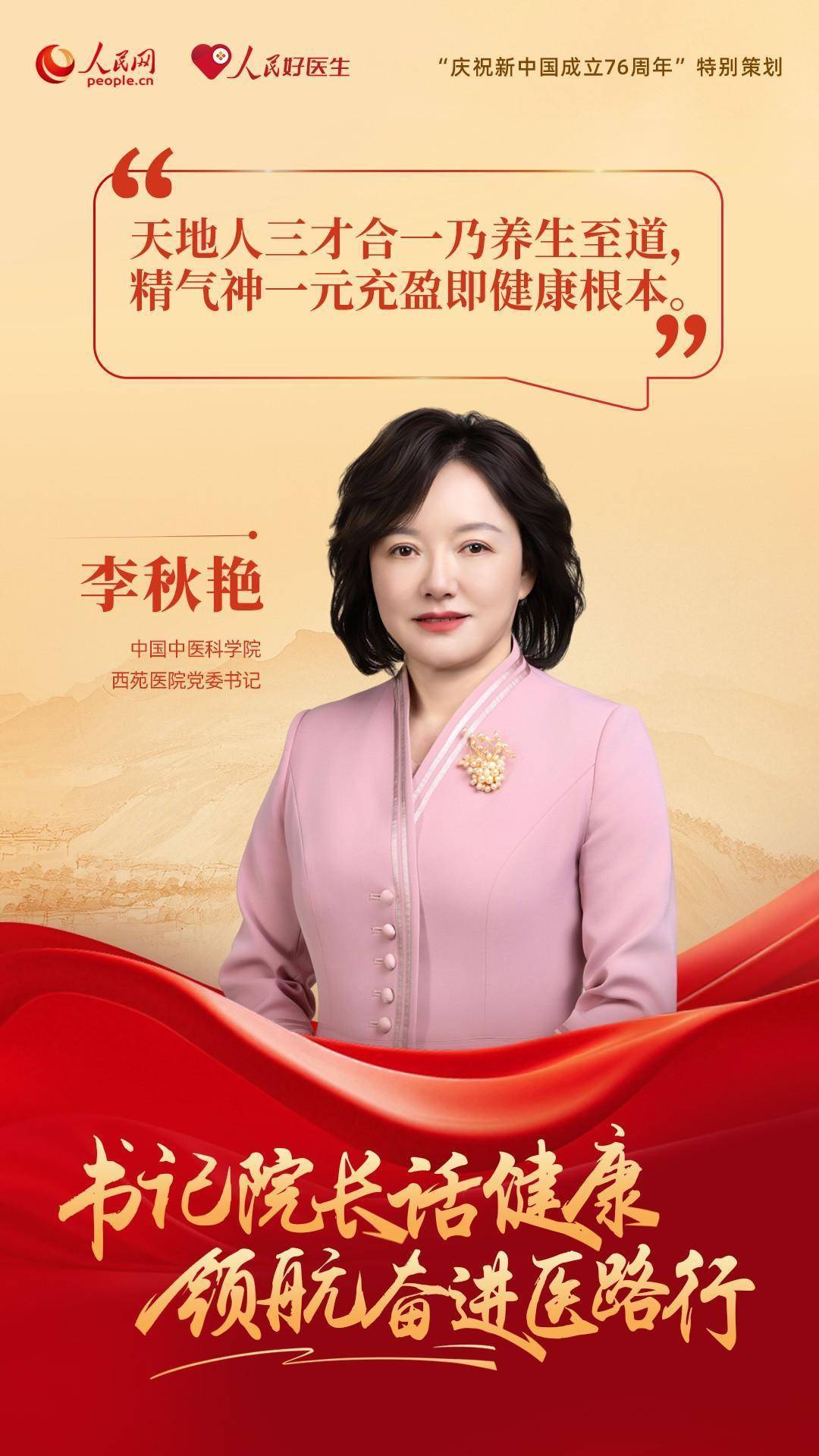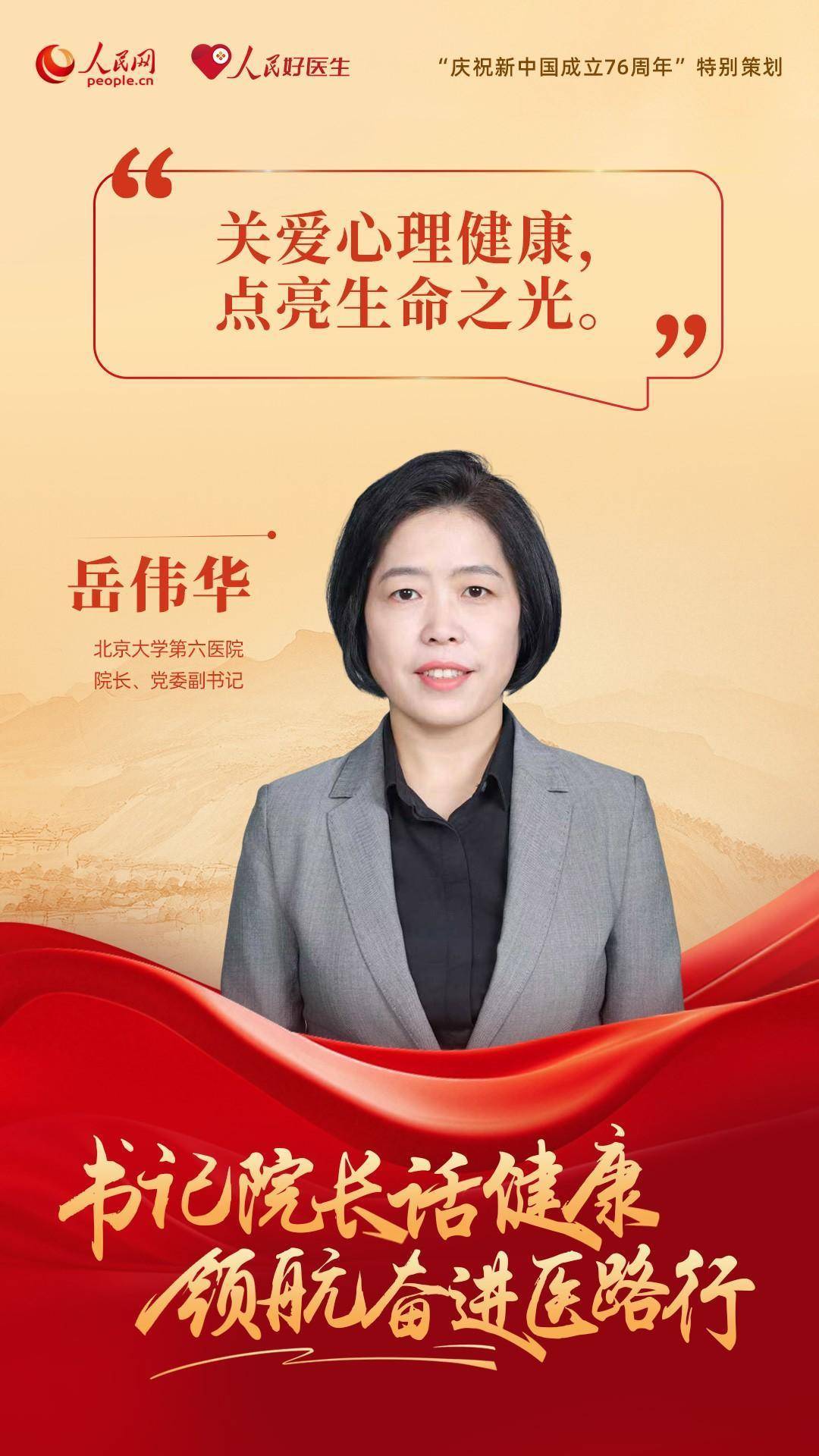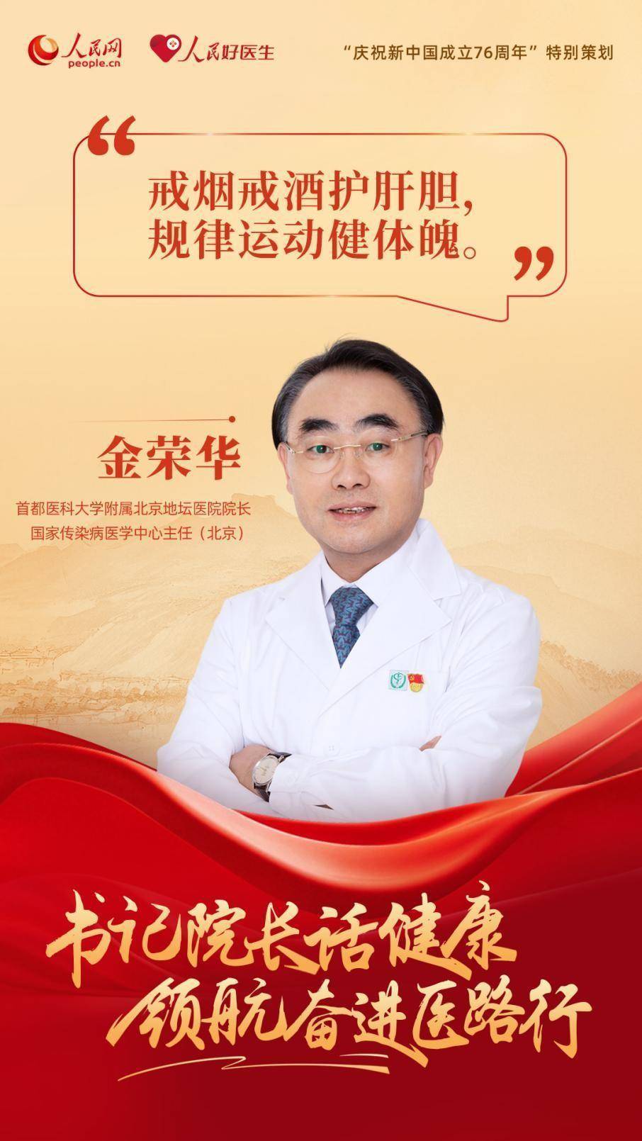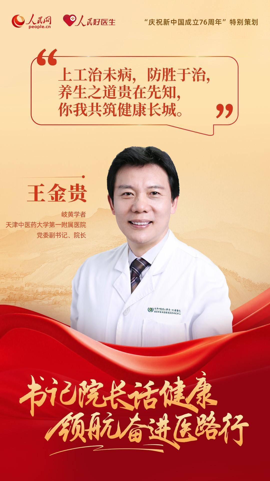 编者按:为了庆祝新中国成立76周年,人民网、人民好医生客户端特别推出“书记院长话健康 领航奋进医路行”策划,邀请18位全国公立三甲医院党委书记与院长分享“医路”前行中的医者初心与健康心得。